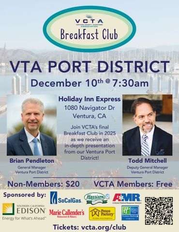 Join us for these recurring events as we bring in guest speakers to discuss topics you want to know about. Become a member to attend these events free and support our advocacy throughout the County of Ventura. For more information, contact us at info@vcta.org